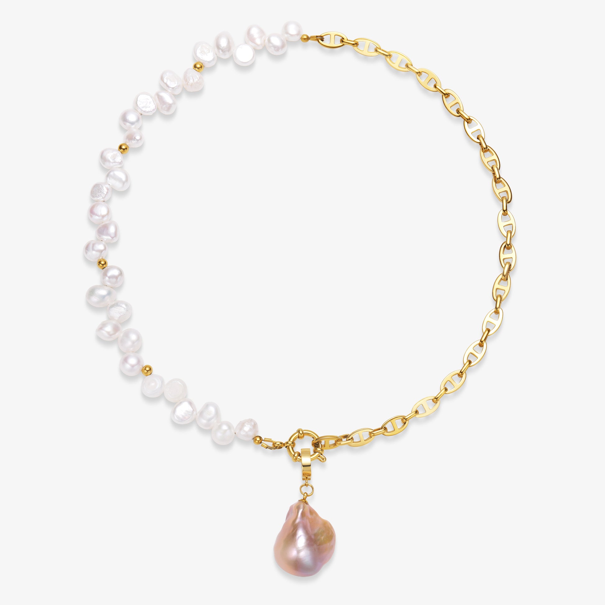 Half Chain & Half Fresh Water Pearl Necklace