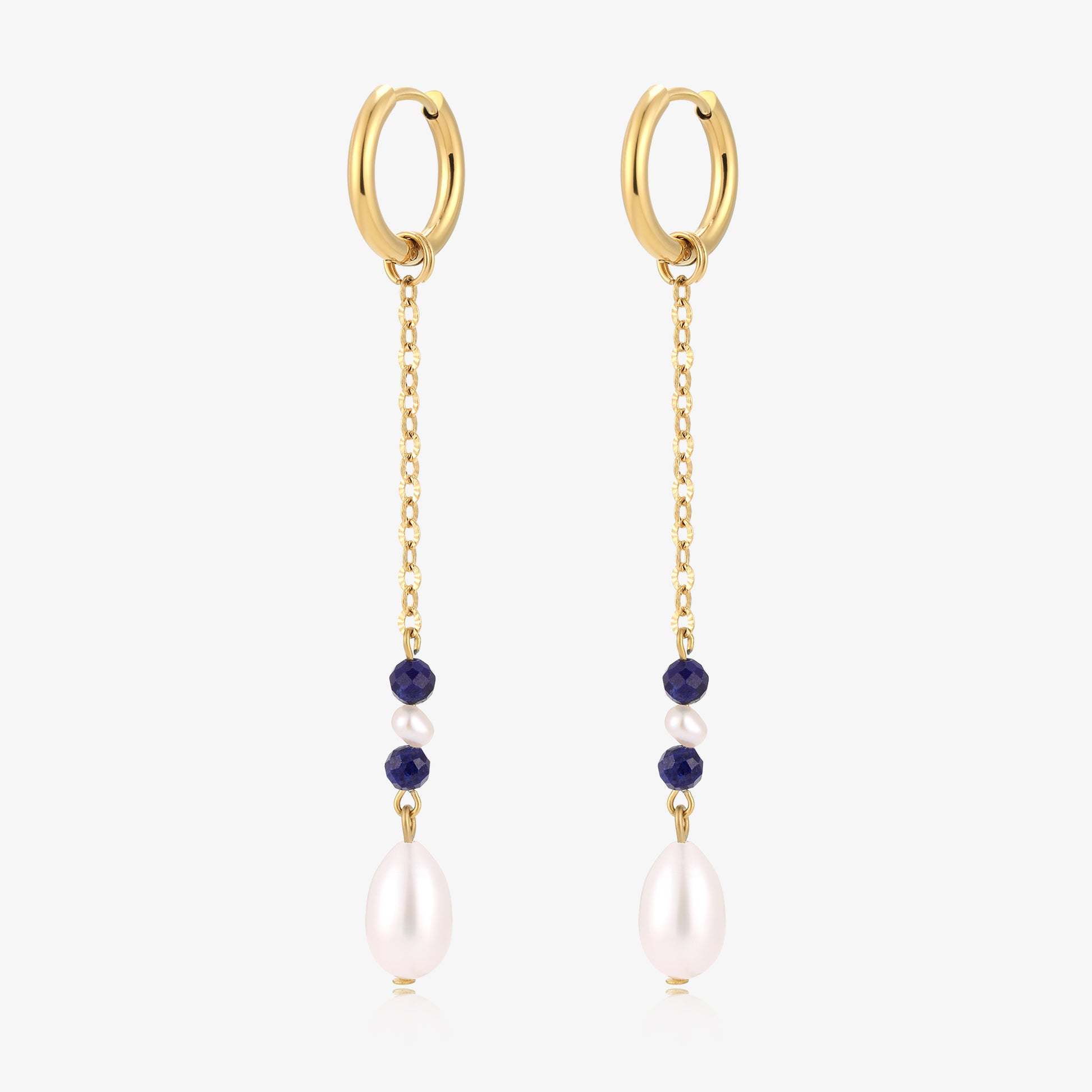 Long Dangle Lapis & Baby Fresh Water Pearl Earrings