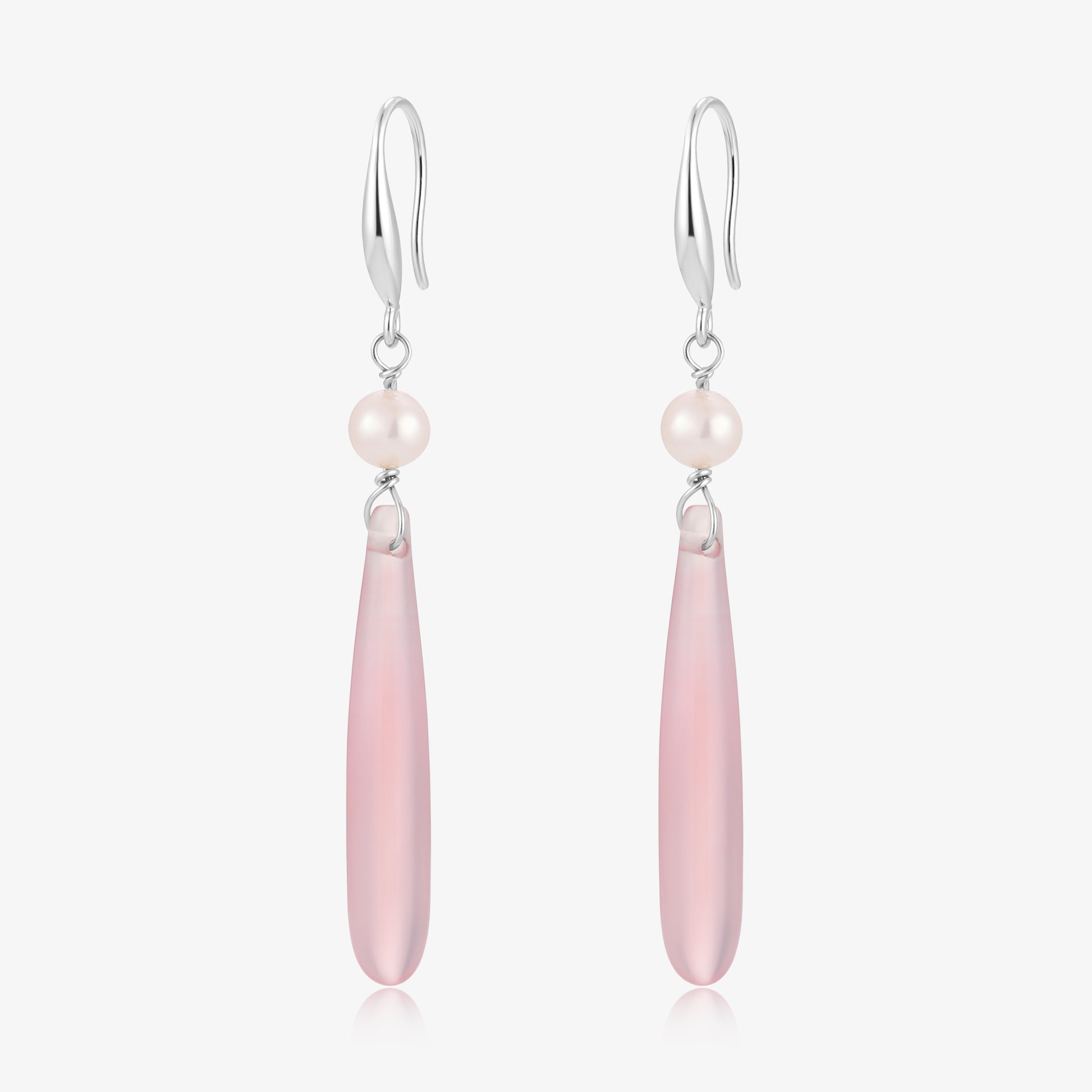 Long Dangle Pink Quartz & Baby Fresh Water Pearl Earrings