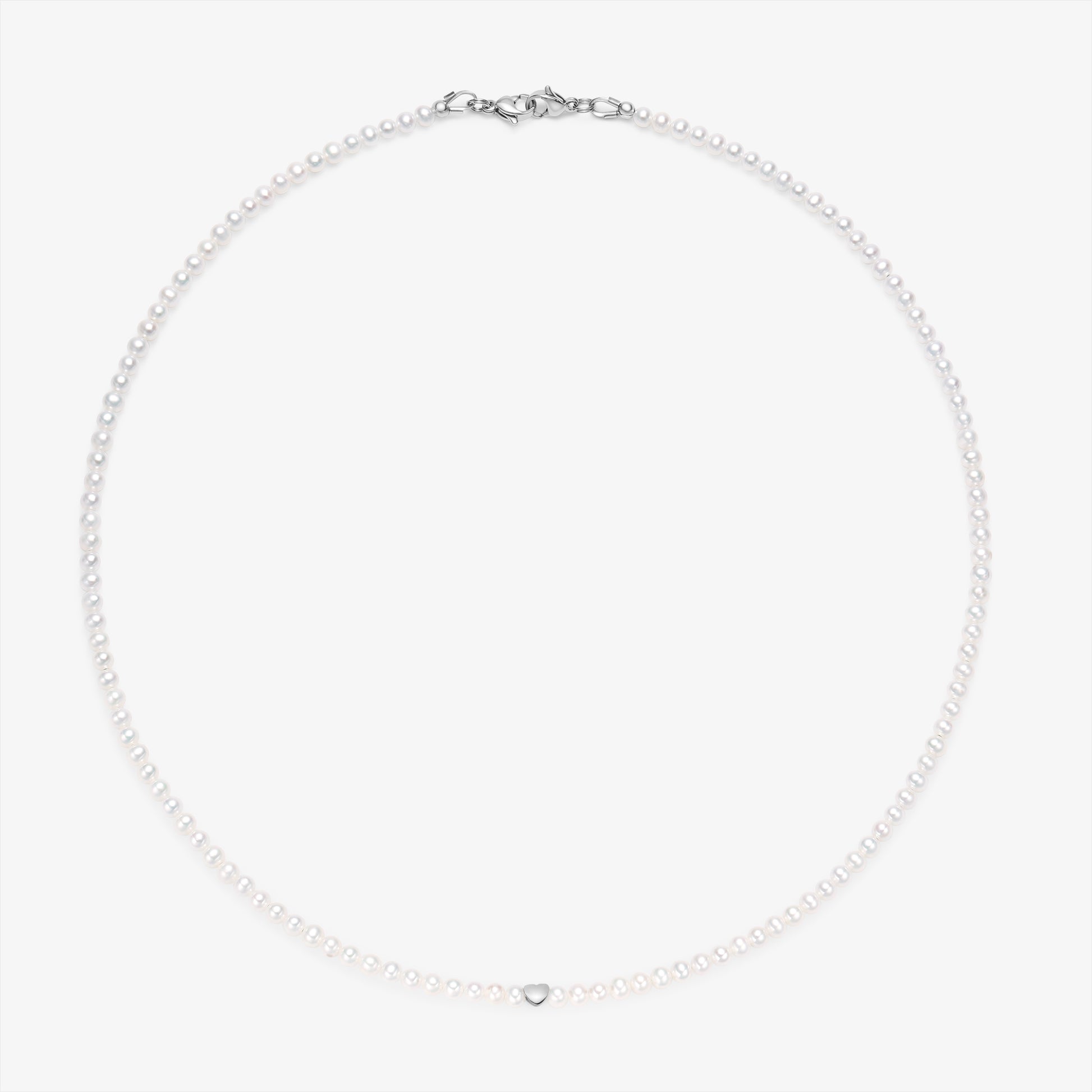 Baby size fresh water pearl necklace with a dainty heart.