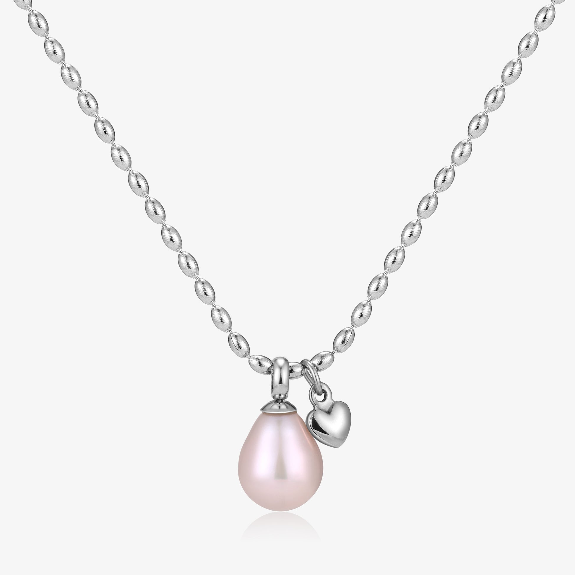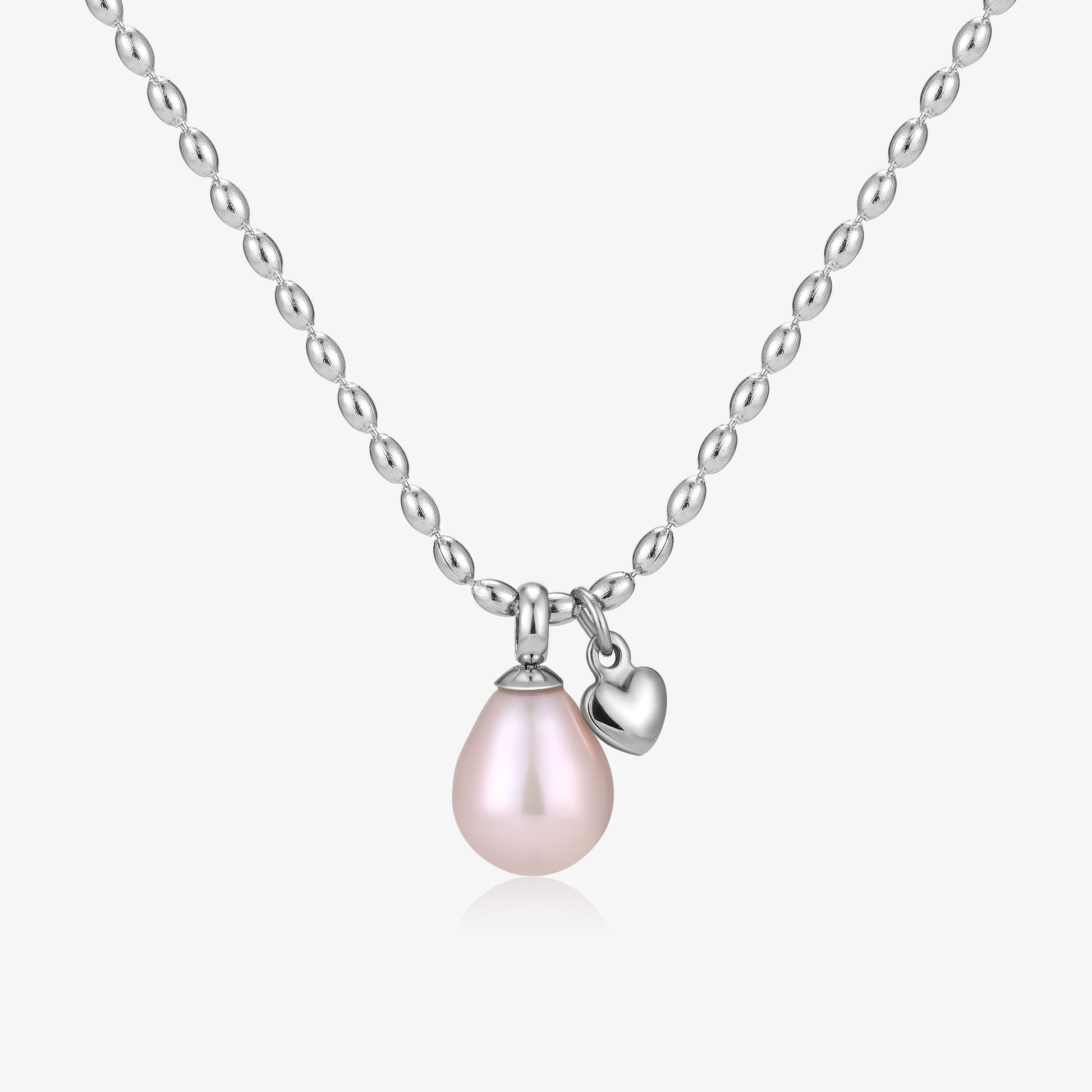Dangle Heart And Rice Shape Fresh Water Pearl Necklace